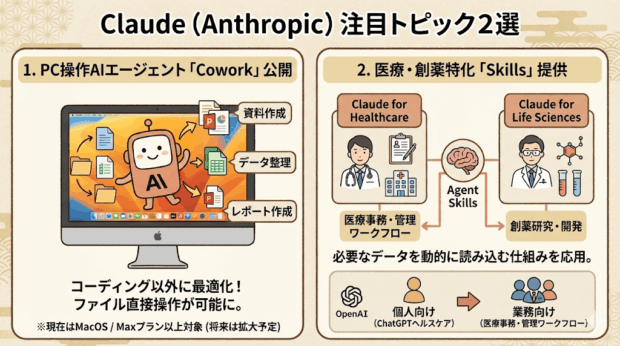 Claudeは、医療や創薬に特化した「Claude for Healthcare」と、「Claude for Life Sciences」を発表しました。