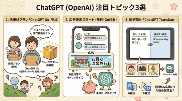 OpenAIは、ChatGPTの無料ユーザーや新しく提供されるGoプランのユーザー向けに、広告の表示を開始すると発表しました。