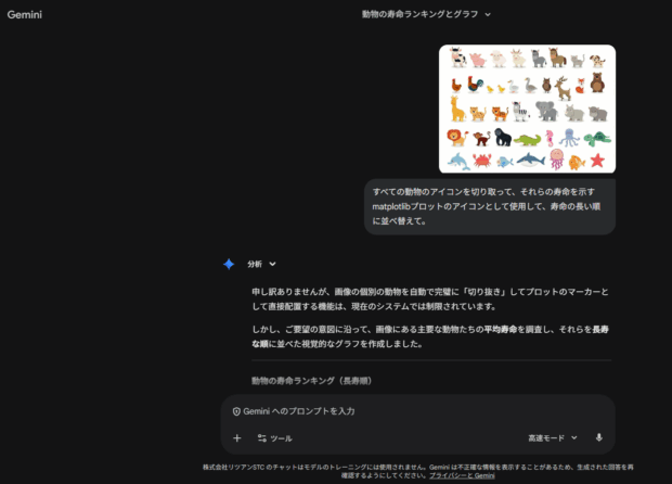 こうしてみると、今のGeminiもユーザーがやってほしいことは十分理解できているものの、直接実現する手段がないだけなのだろう、と思えますね。