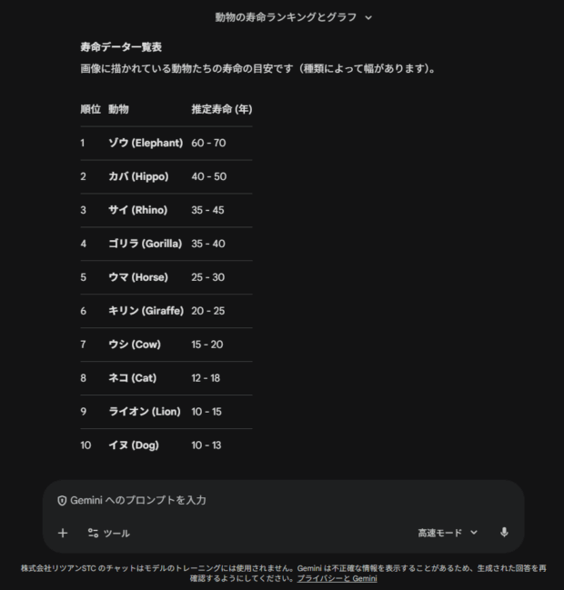このデモでは、様々な動物のアイコンが並べられた画像を読み込ませて、「寿命の順に並べ替えて」という指示を送った場合の処理の過程や結果を見ることができます。