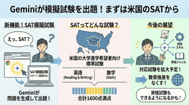 GeminiがSAT(Scholastic Assessment Test)の模擬試験を出題してくれるようになりました。(英語のみ)