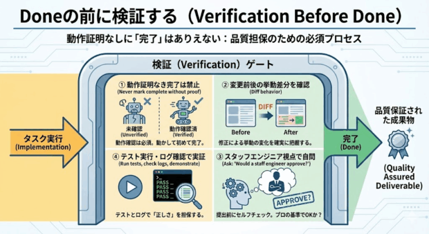 意味:Planモードで実装計画だけでなく、検証計画も立ててもらうルールです。
