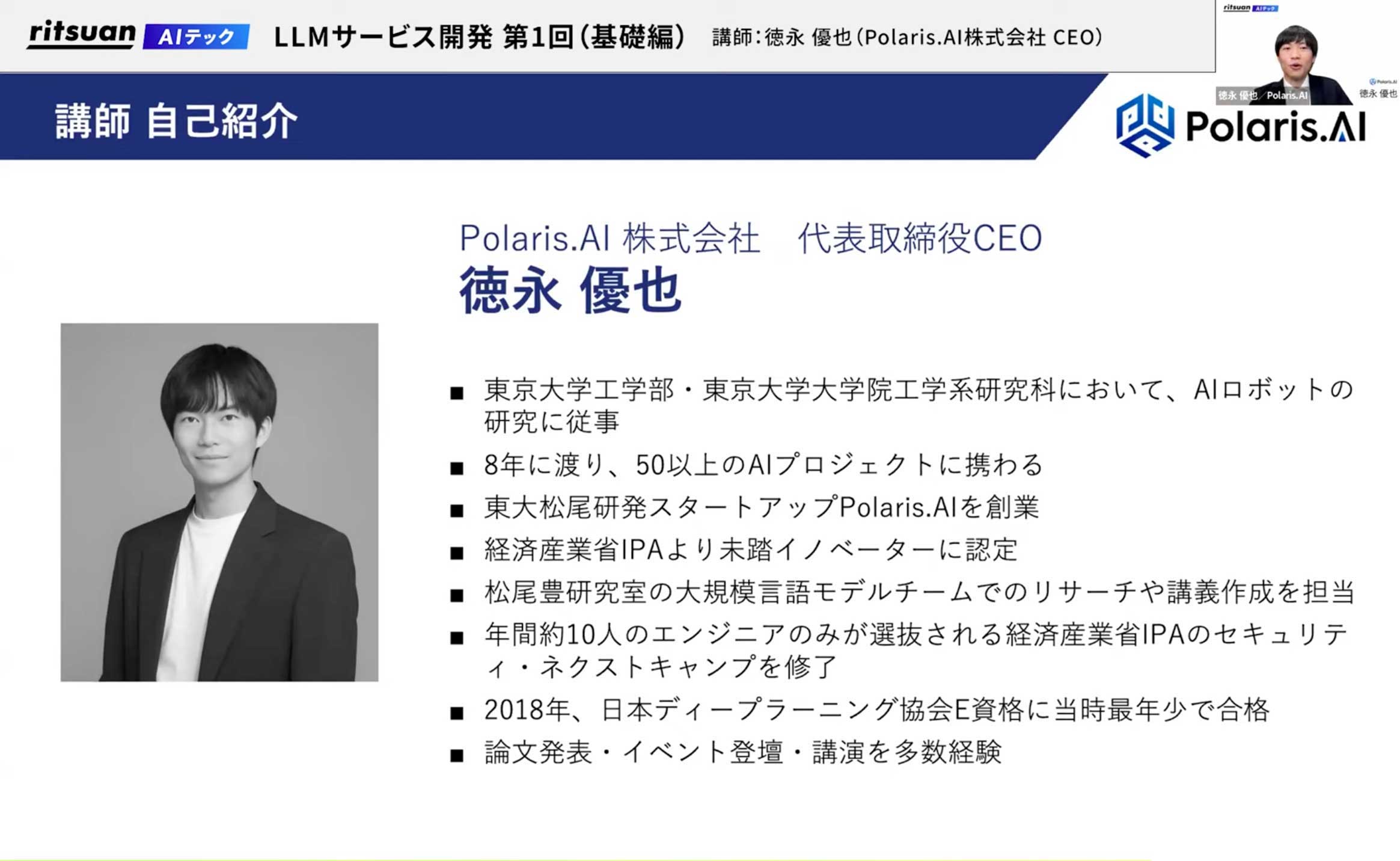 Polaris AIは東京大学松尾研究室からスピンアウトした会社で、約40名で事業を行っています。