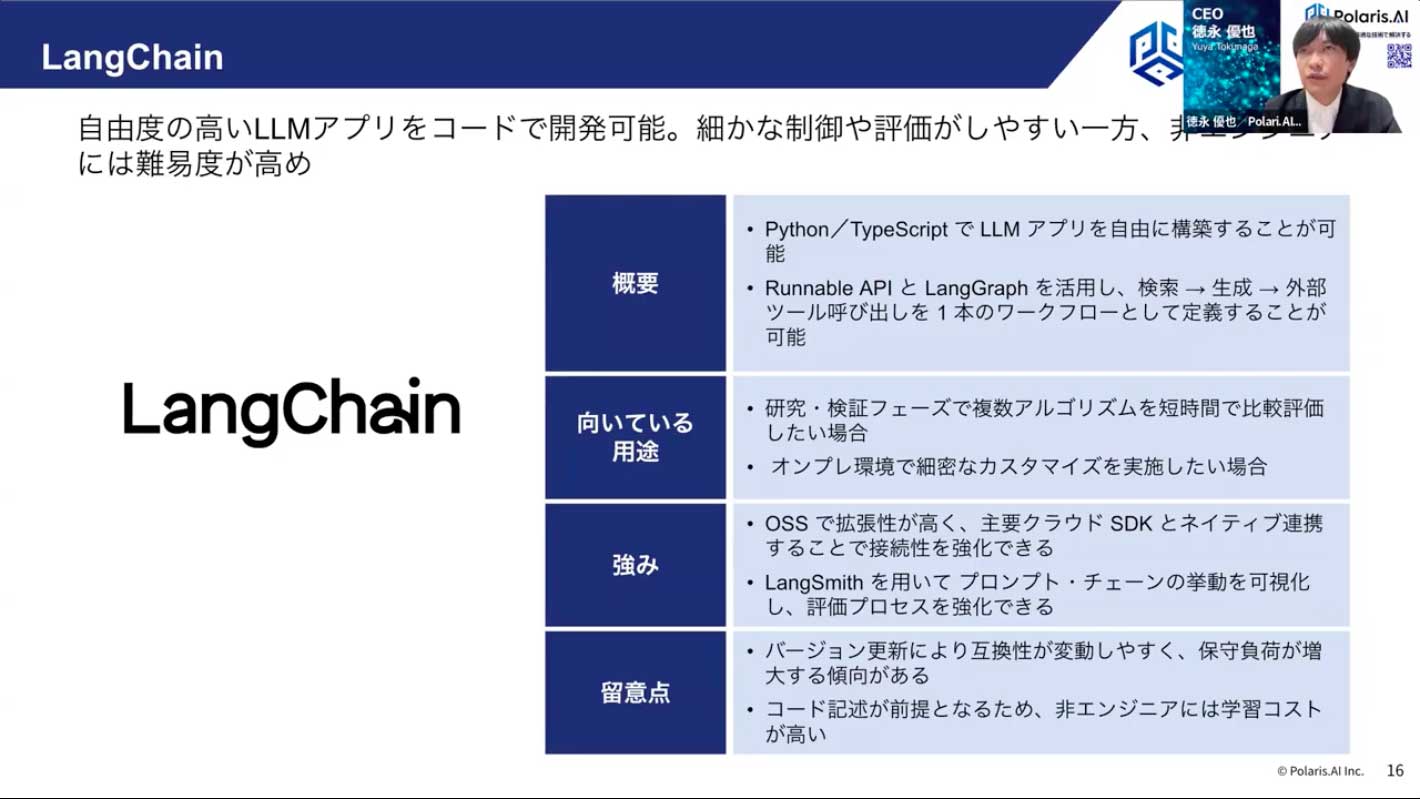 ツール選定から、コードベースでのRAG精度向上テクニック、そして表・画像といった非テキストデータへの応用まで、実務視点で解説いただきました。