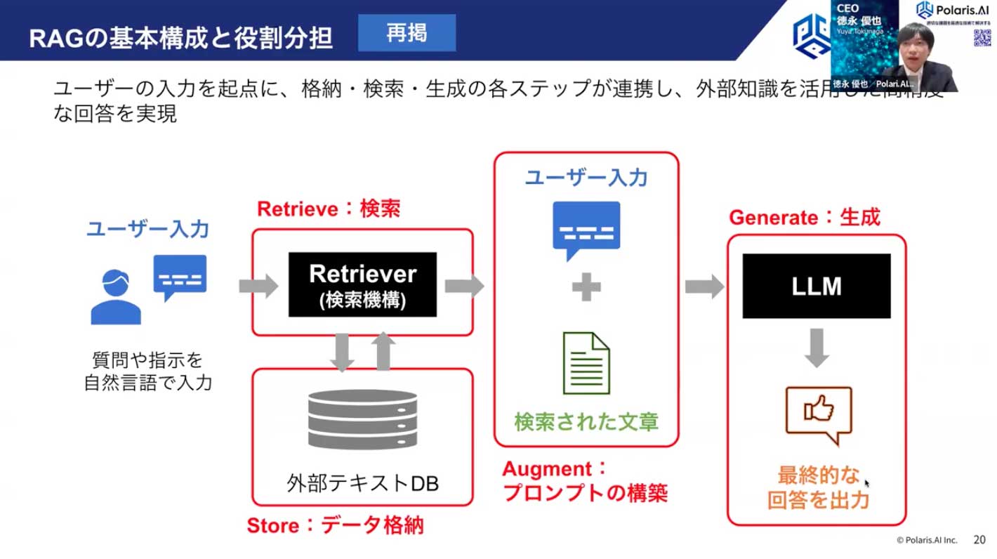 計4回にわたった本講義は今回で完結し、今後の学習指針となるRAG開発の「全体像」を掴む機会となりました。