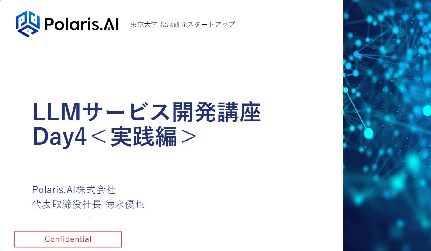 講師は、Polaris.AI株式会社(東大松尾研発スタートアップ)のCEO・徳永優也氏。