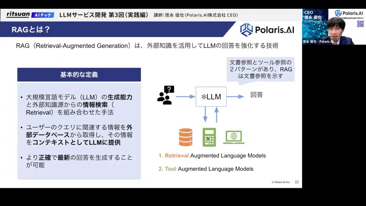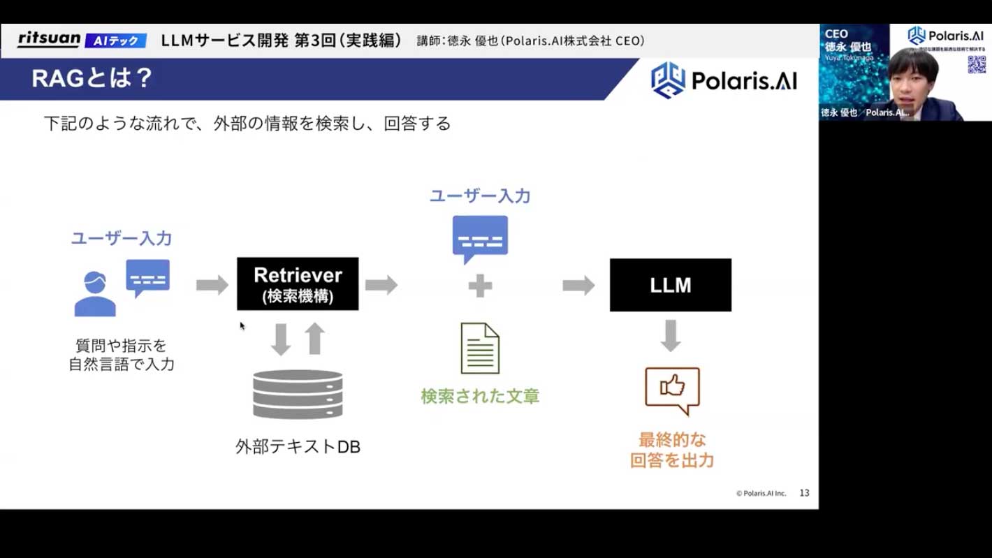 では、RAGの全体像という話に入っていきます。