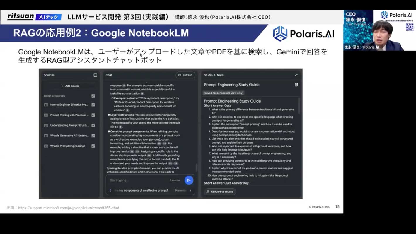 後ほど体験していただくGoogleの「NotebookLM」も、RAGをうまく応用した非常に便利で使いやすいツールです。