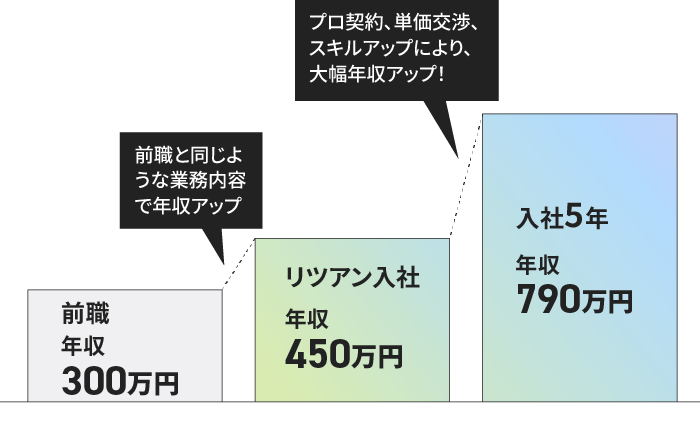 前職年収 300万 ▶︎ リツアン7年 740万永山 透生 2018年入社/ITエンジニア